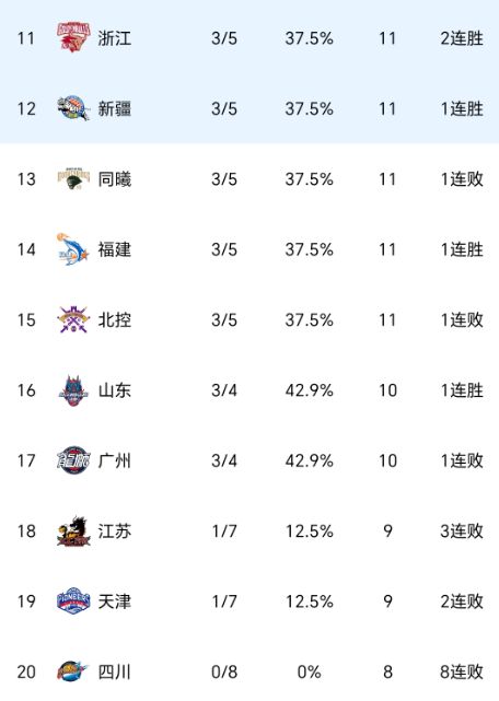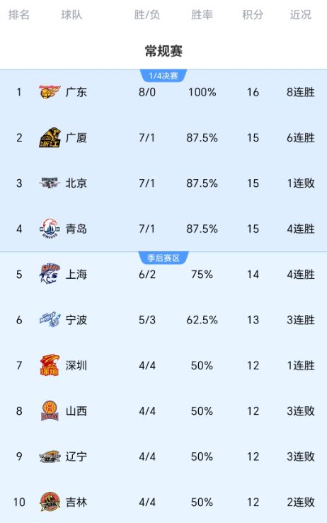 CBA积分榜最新排名!广东反超广厦杀回第一,北京惨败被打回原形