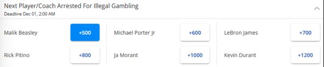 北京时间10月26日,NBA版本的“反赌风暴”仍是舆论的焦点,下一位被逮捕的NBA人员会是谁?已经有相关赔率开出,马利克-比斯利成为头号热门,湖人球星詹姆斯和火箭新援杜兰特也都排名靠前。