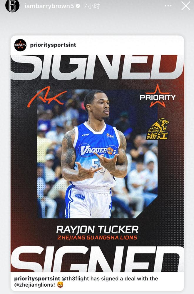 雷琼-塔克,是第一次来CBA打球。可能很多球迷不知道,塔克是布朗推荐给广厦俱乐部的!塔克在8月份的时候就在社媒宣布加盟CBA浙江广厦俱乐部,布朗还转发了这条消息,新赛季兄弟俩再次并肩作战。