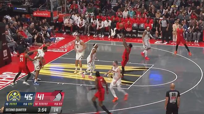 今天面对来势汹汹的掘金,开拓者也没有掉链子,前三节打完都没有被甩开,第三节打了过半还是以68比67领先掘金1分,对于一支年轻且正在尝试回到正轨的球队来说,很不错了。