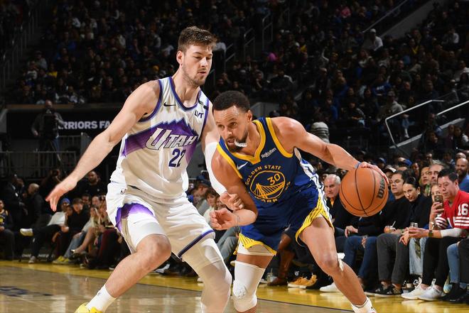 这也是库里过去10天火爆状态的缩影,在过去4场比赛中,库里场均出战34.3分钟,可以拿下30.8分4.5板2.3助,三项命中率46.8/44.4/96.7%。