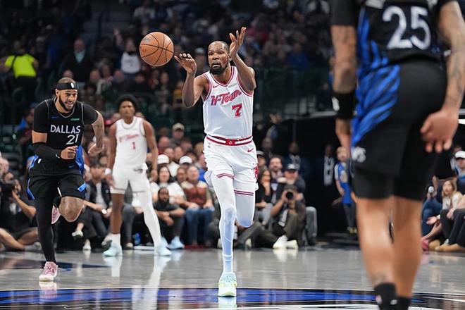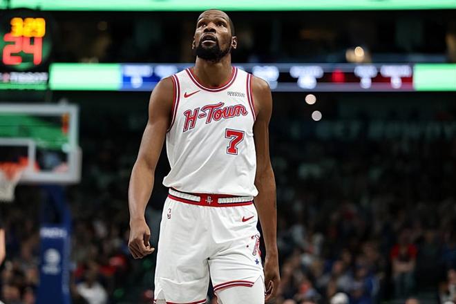 本场比赛中,火箭虽然输掉了比赛,但是球队的锋线球星凯文-杜兰特(Kevin Durant)也算是尽力了。杜兰特全场出场37分44秒,投篮26中14,三分线外7中2,罚球5中4,得到了全场最高分34分外加5篮板7助攻3盖帽的全面数据,还有2次失误和4次犯规,正负值也是达到了全场最高的+15。杜兰特在进攻端依然是保持了极高的效率,他的得分能力又一次有了充分地体现,他也是靠着个人能力为球队提供了大量的帮助和支持。不仅仅如此,杜兰特在其他方面的表现也是可圈可点的,他也展现出了不俗的传球能力和组织能力,而且他在防守端的表现同样是相当不错的。杜兰特算是在攻防两端都发挥出了自己的价值,他在场上时球队的局面也是值得肯定的。可惜他一下场,火箭的局面立刻陷入被动,球队最终也还是输掉了比赛。