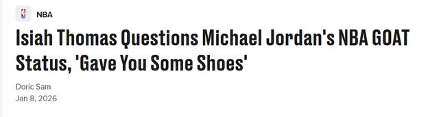 北京时间1月9日,篮球名人堂成员“微笑刺客”伊塞亚-托马斯再度点燃与传奇球星迈克尔-乔丹之间的恩怨。在做客《追根溯源》节目时,托马斯被问及对NBA黄金时代争议的看法,他借此机会直言,勒布朗-詹姆斯才是超越乔丹的历史最佳球员(GOAT)。