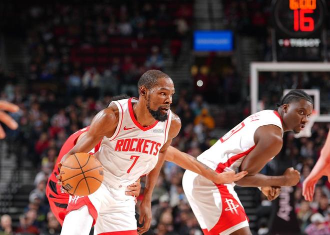 开拓者77比90落后13分进入末节,但是他们在末节打出一波11比0的进攻浪潮,一举缩小比分差距。火箭在末节打了4分36秒才靠杜兰特的干拔中投打破得分荒。