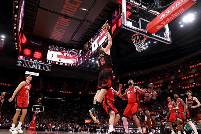本场比赛中,公牛的先发中锋尼科拉-武切维奇(Nikola Vucevic)的表现令人大跌眼镜。武切维奇全场出场37分04秒,投篮19中7,三分线外3中0,仅得到了14分7篮板5助攻1抢断2盖帽的数据,还有3次犯规,正负值为-10。武切维奇在进攻端效率不佳,得分能力非常一般,浪费了不少机会,也没有办法为球队提供足够的帮助和支持。不仅如此,武切维奇在防守端的表现更是惨不忍睹。火箭先发中锋阿尔佩伦-申京(Alperen Sengun)完全是打爆了武切维奇了。武切维奇手握大量的出场时间和不少的球权,然而他在攻防两端的表现都是一塌糊涂的水平,完全没有起到应该起到的效果,这一系列的糟糕表现也在很大程度上导致了球队的这场失利。