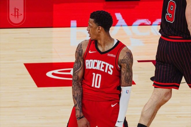 上半场比赛,两队其实打得很乱,基本看不出什么比赛内容。无非就是你领先2分,我这边追回来几分。首节比赛,火箭队虽然靠着谢泼德的连续三分打出了一波10-0的高潮,但公牛队的压哨三分又一次追回了分差。次节也是如此,两队你来我往,甚至半场结束时公牛队还领先了3分。整个上半场,两队13次打平,14次交替领先。大家也都知道,火箭队的比赛,前三节参考性不大,末节更能看出走向。在比赛还剩下7分54秒的时候,阿门的罚球命中帮助火箭队取得了6分领先。但很快多苏姆和奥科罗的连续三分,以及后者的罚球瞬间反超了比分。