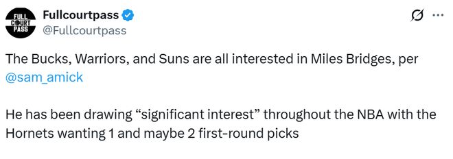 勇士等多队追求布里奇斯!黄蜂要价12个首轮库明加大概率成筹码