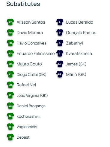 北京时间1月21日04:00,欧冠 联赛阶段 第7轮,葡萄牙体育主场迎战巴黎圣日耳曼,赛前双方球队首发名单公布如下: