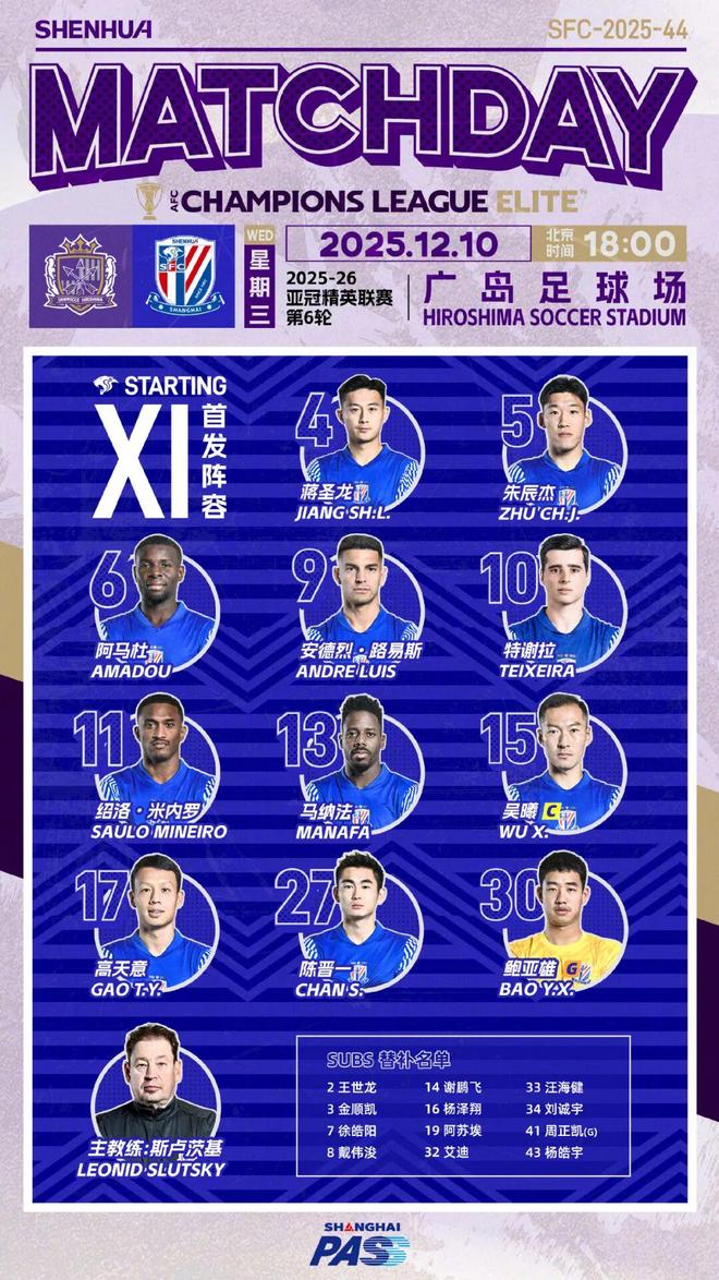 北京时间12月10日晚6时,亚冠精英联赛东亚区第6轮,上海申花客场挑战广岛三箭。上半场,安德烈失良机+小角度劲射中柱,朱辰杰门前救险;易边再战,主队利用角球机会,由荒木隼人头球打破僵局。最终,上海申花客场0比1负于广岛三箭,遭遇亚冠三连败。