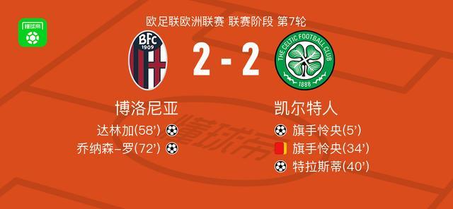 博洛尼亚22凯尔特人,旗手怜央破门,乔纳森罗扳平