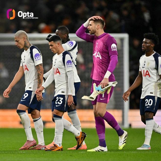 此役主场1-2输给富勒姆之后,热刺在2025年英超联赛中已经遭遇了10场主场失利,这一数字追平了热刺队史英超单一自然年主场输球场次最多纪录,他们此前在1994年和2003年也各有过10次英超主场失利。