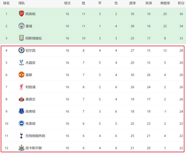 本赛季,英超争四已经乱成一锅粥了,从第四的切尔西,到第十二的纽卡斯尔,这9支球队就差了6分。现阶段,恐怕没有球队敢保证自己肯定能够在赛季结束后位居前四。曼联在表现远远不达预期的情况下,还能够排名前六,这足以说明,英超大部分争四球队,其实表现都非常一般。事实上,本赛季除了阿森纳之外,英超传统强队表现都有下滑,特别是利物浦,卫冕冠军前16轮才拿到8场胜利,让人大跌眼镜。这个赛季,或许要到最后,才知道哪支球队能进入欧冠!