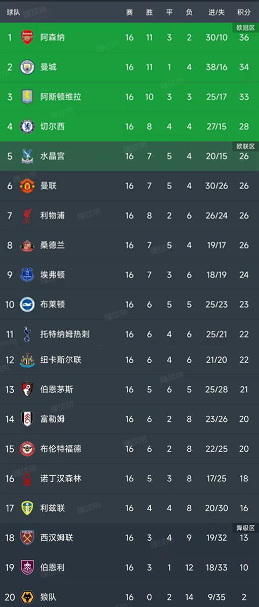 北京时间12月16日,随着红魔曼联4-4战平伯恩茅斯,英超第16轮结束所有比赛,最新积分榜如下!