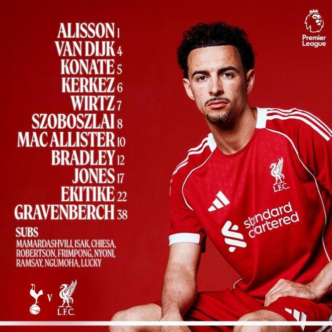 北京时间12月21日01:30,英超第17轮的一场对决。热刺坐镇主场,迎战利物浦。赛前,双方的阵容公布如下:
