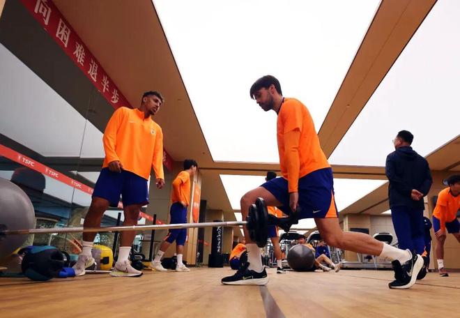 山东泰山队积极备战客场与武汉三镇队的中超联赛