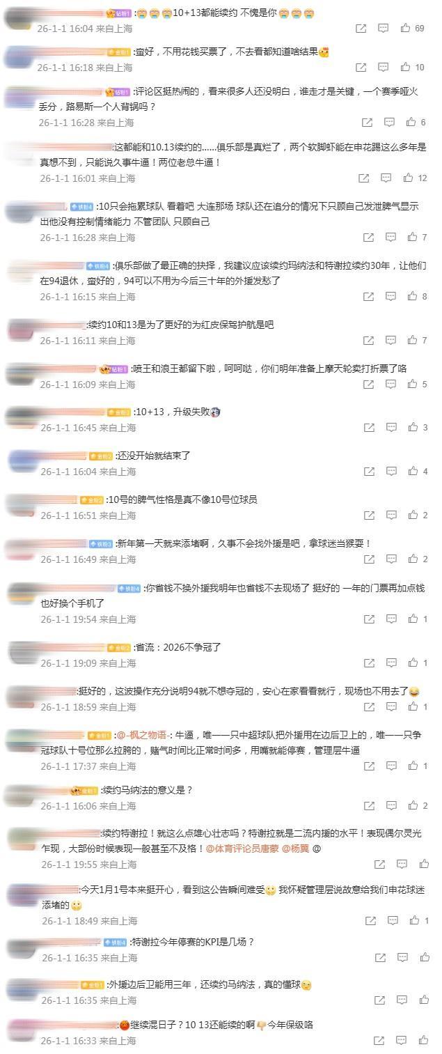 特谢拉马纳法续约!申花球迷不满:继续混日子,新年第一天就添堵