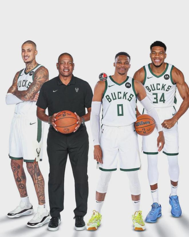 雄鹿媒体SleeperBucks更新社媒,晒出库兹马+里弗斯+威少+字母哥的合成照,并配文道:“我们是否应该考虑引进拉塞尔-威斯布鲁克?”