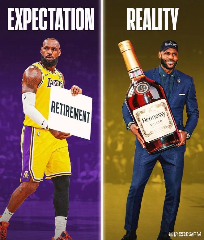 结果,老詹的决定二令人大吃一惊,万万没想到居然是广告。在《第二次决定》节目中,詹姆斯公布了答案:他将与轩尼诗合作,推出联名限定款“勒布朗-詹姆斯臻选V.S.O.P干邑”。“非常荣幸能延续与轩尼诗的这段合作,"詹姆斯在新闻稿中表示,"瓶身设计融入了我的经典庆祝动作,这对我而言意义非凡——它象征着欢庆与联结,也正是这款产品设计的初衷。”好搞笑,不得不承认,詹姆斯是顶级的营销大师,这一波操作能让他的广告效果发挥到机制,赚得盆满钵满。不过,也确实有点把球迷,媒体,玩弄于鼓掌之间的意思,连自己人都看不下去了。