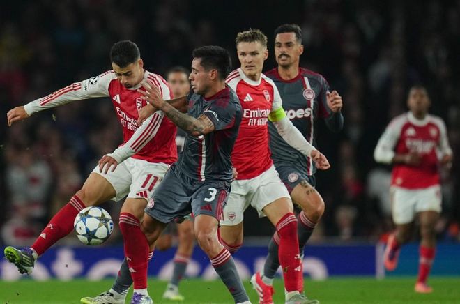阿森纳排出433阵型。马丁内利、哲凯赖什和特罗萨德的进攻三叉戟联袂出击。厄德高、苏比门迪和梅里诺组成3中场。本-怀特、萨利巴、加布里埃尔和斯凯利4后卫首发出战。戴维-拉亚担任首发门将。阿森纳的首发阵容总身价6.17亿欧元,而奥林匹亚科斯的首发阵容总身价6640万欧元。