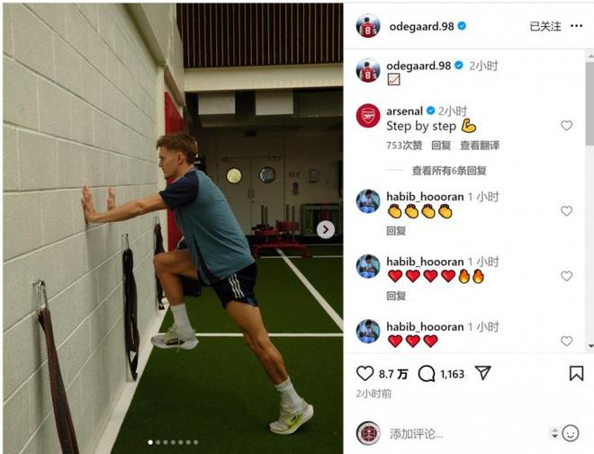 本赛季,兵强马壮的阿森纳也上来就遭遇到了伤情困扰,不过正如上文谈到的,在转会窗上“大肆引援”之后,他们的确是充足子弹来应对这样的问题。目前,中场大将也是他们的队长厄德高,更新了自己的社交媒体动态,正在进行加速的康复训练。对他来讲是有机会提早复出,来帮助阿森纳继续造势的。帮助他们完成制造机会的任务,厄德高是在10月4日对西汉姆的比赛中、与对方撞击后,造成受伤的。